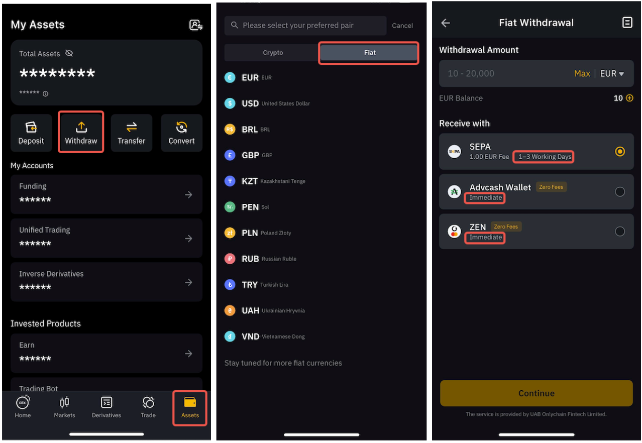 To learn more about how to withdraw fiat currency, please refer to the available articles for each currency here.