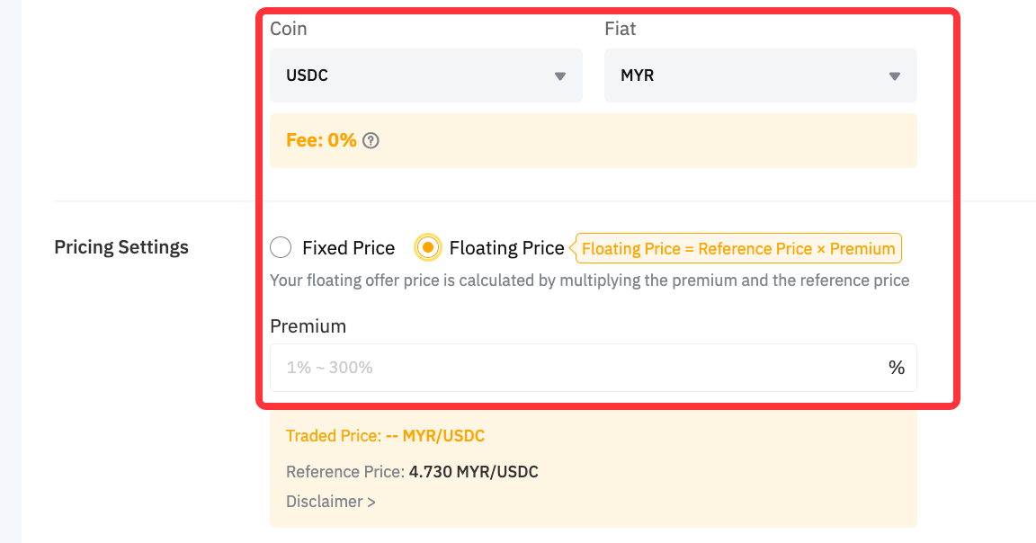 Yes. You can verify the price range for an advertisement on the Post Ad page within the Premium indicator section. It's important to keep in mind that each coin chosen for your ad will exhibit a unique combination of Fixed and Floating Prices.