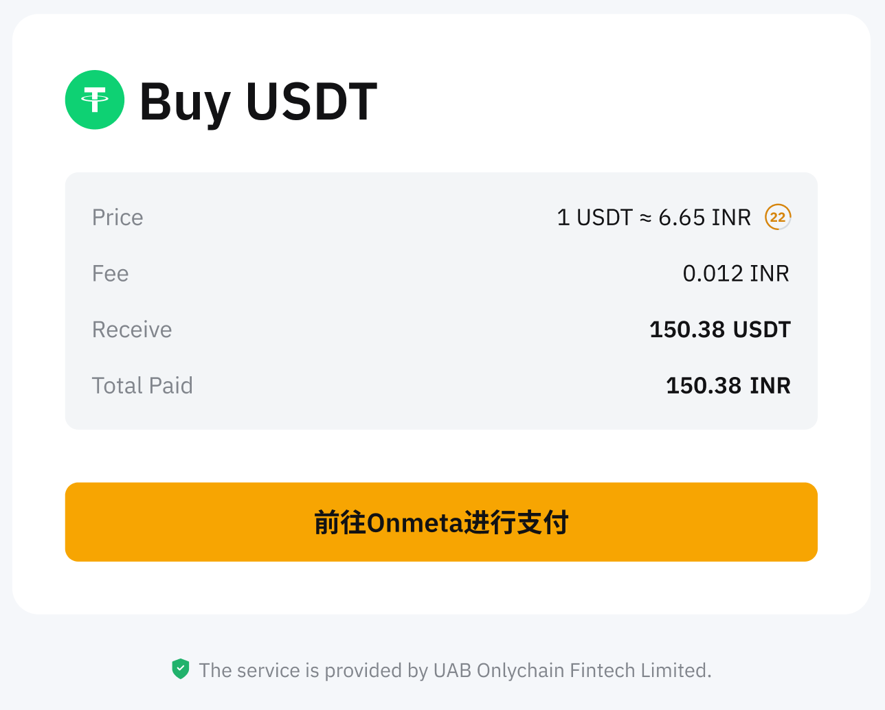 Step 4: After the review is complete, you will be redirected to the Onmeta webpage to complete the payment.