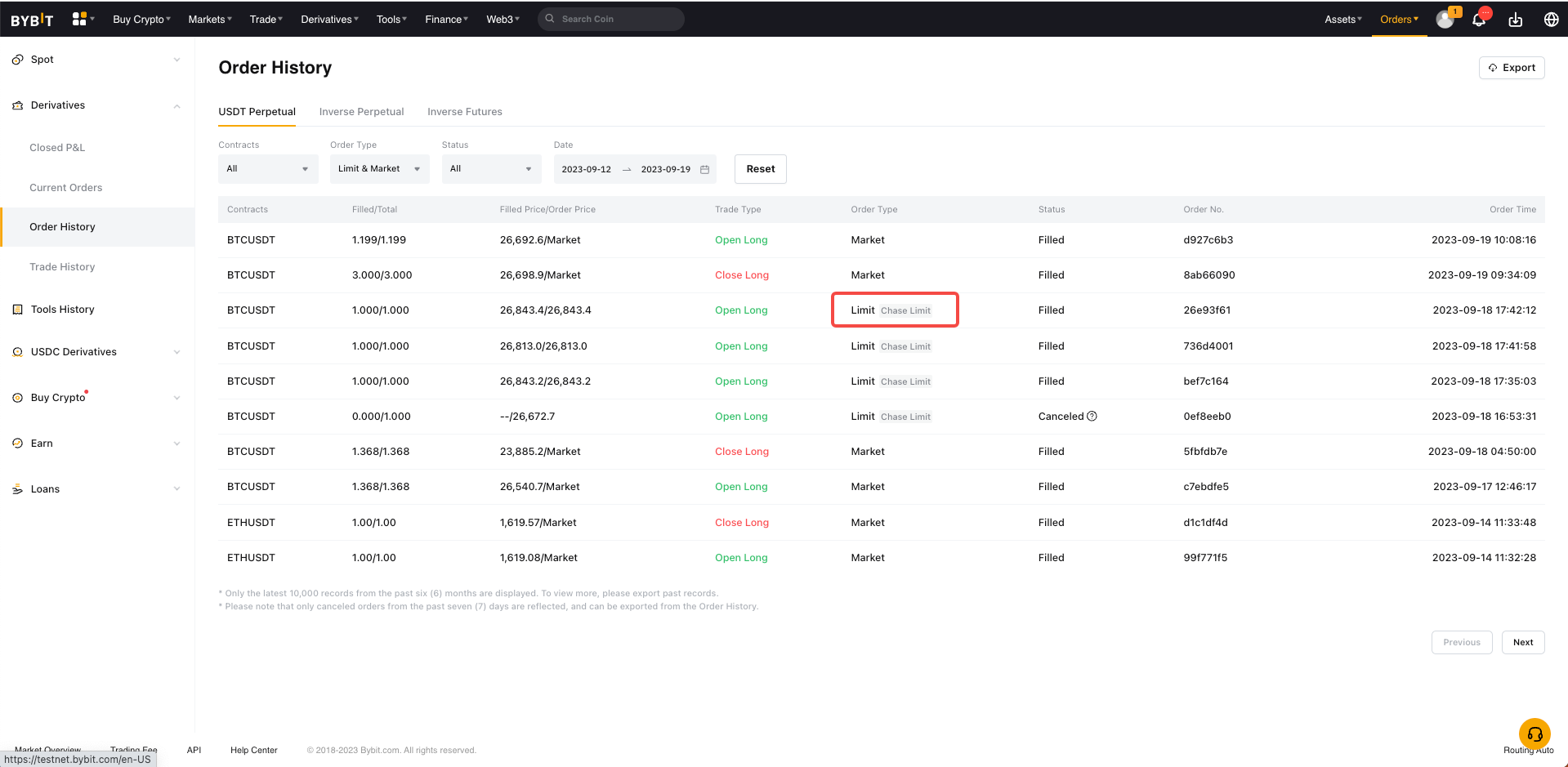 Actualmente, las órdenes límite de seguimiento están disponibles para contratos inversos, USDT perpetuos, USDC perpetuos y futuros de USDC en Bybit.