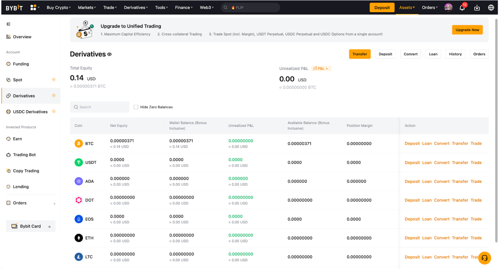 Nota: Para el trading con derivados distintos de los contratos inversos, deberás transferir fondos a tu cuenta de trading unificada.