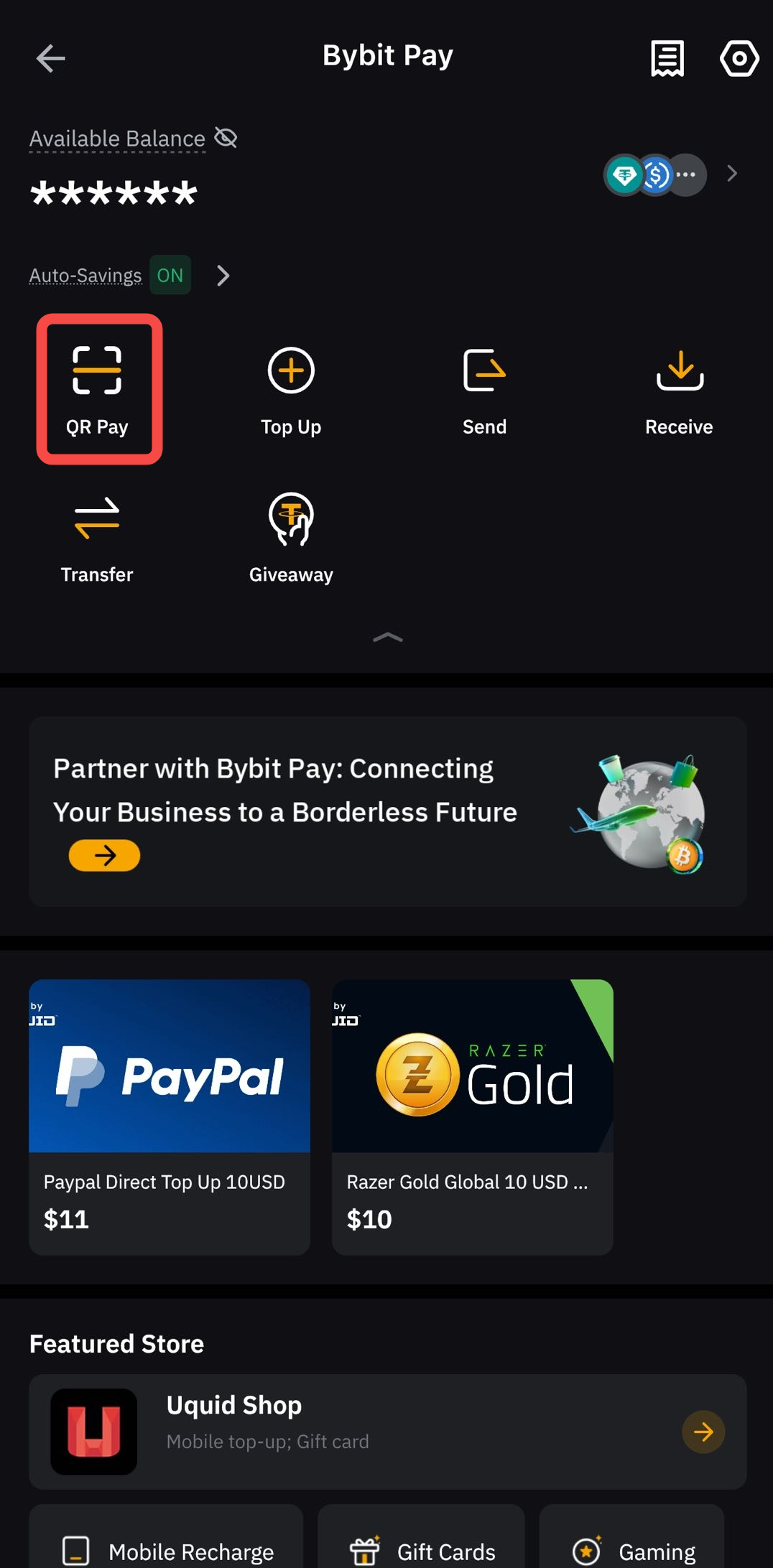 Actualmente, QR Pay solo está disponible en la aplicación de Bybit. Los usuarios primero deben completar su verificación y luego tocar el icono Pago QR para comenzar.
