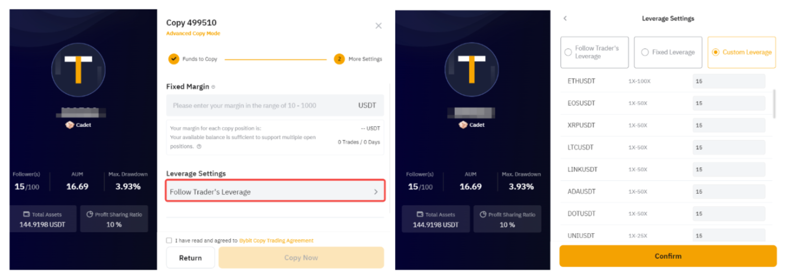 ¿Por qué veo diferentes apalancamientos aplicados a mi posición y a la posición del Master Trader después de seleccionar la opción de apalancamiento "Seguir apalancamiento del Trader"?
