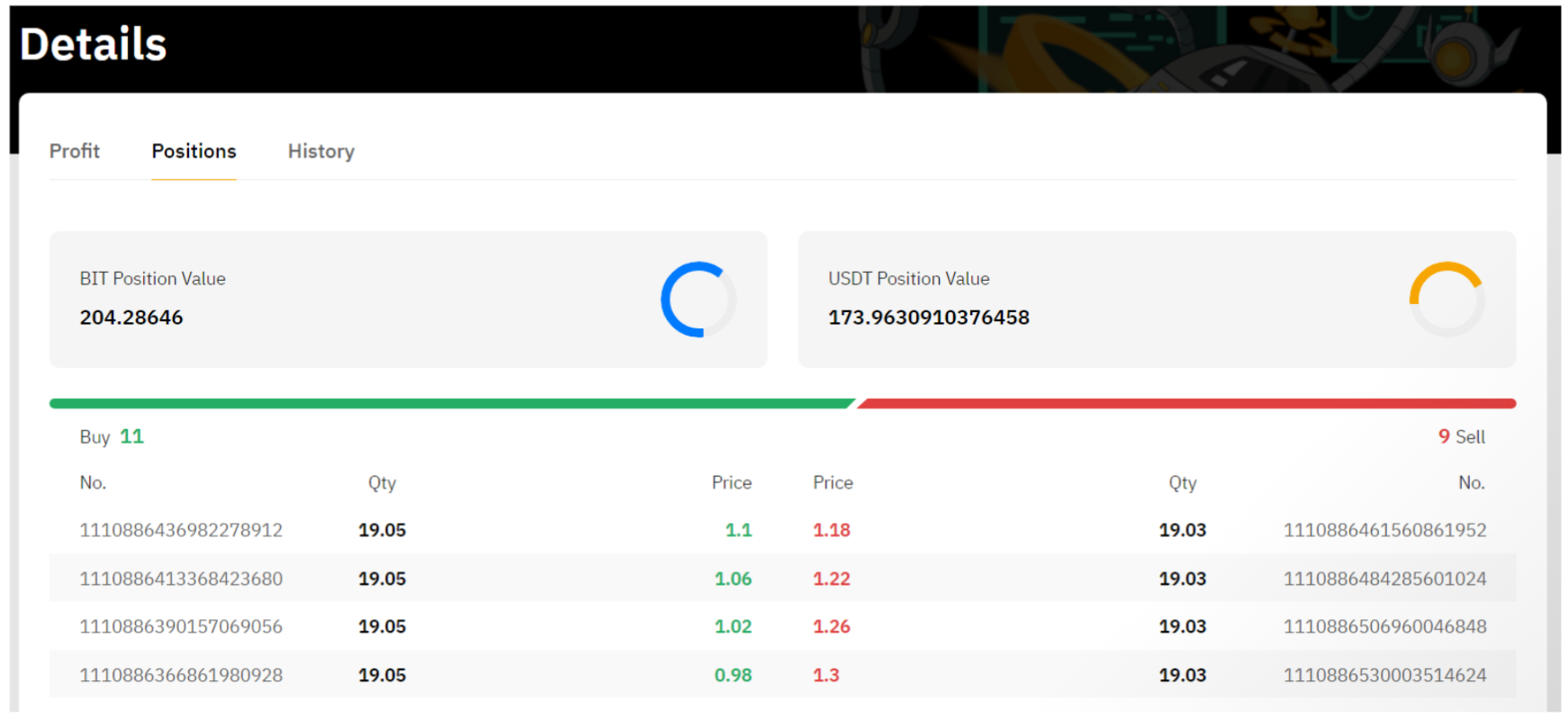 Cuando su bot de grid está en funcionamiento, cualquier beneficio permanecerá dentro del bot. Una vez finalizado el bot, el importe de su inversión y los beneficios se transferirán automáticamente a su cuenta de financiación.