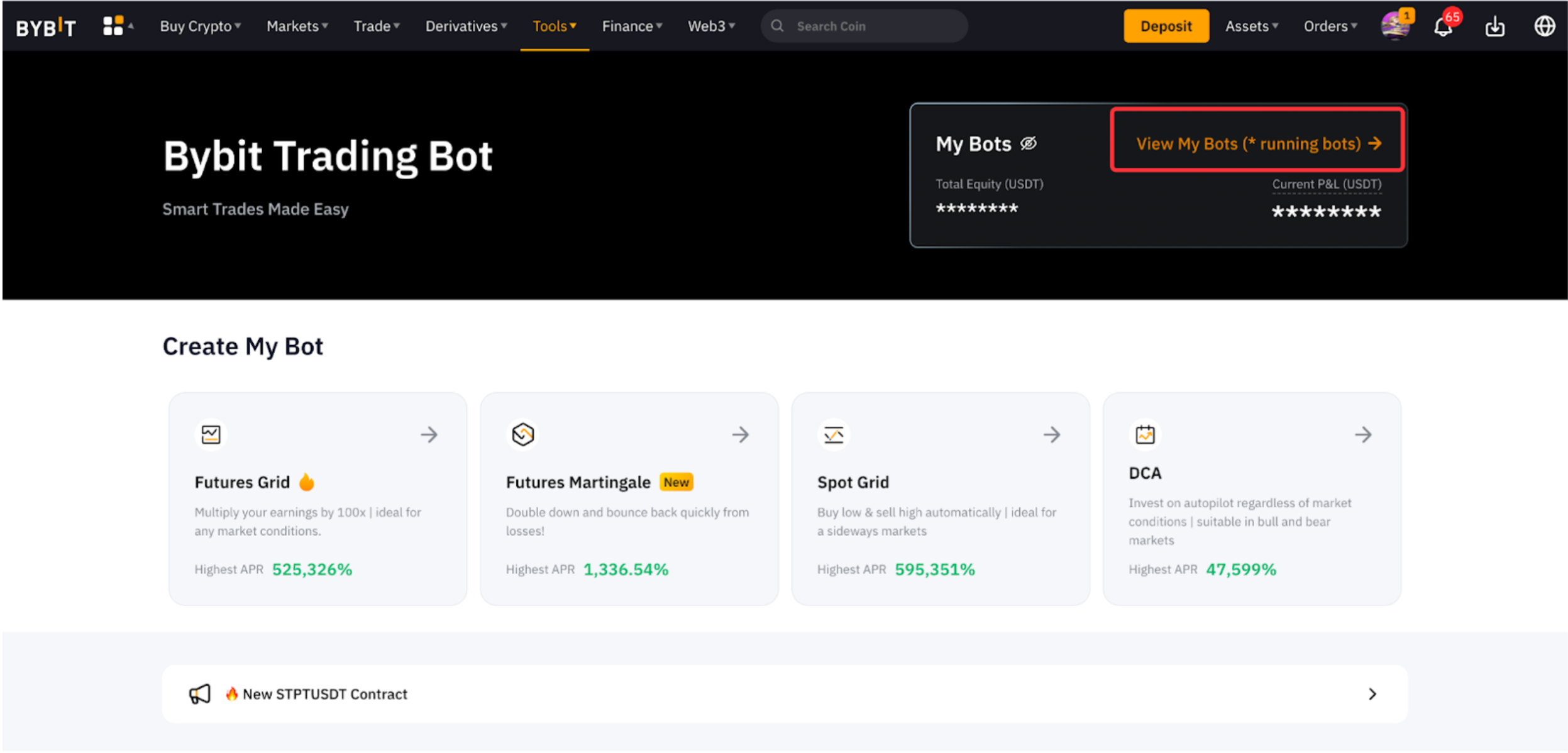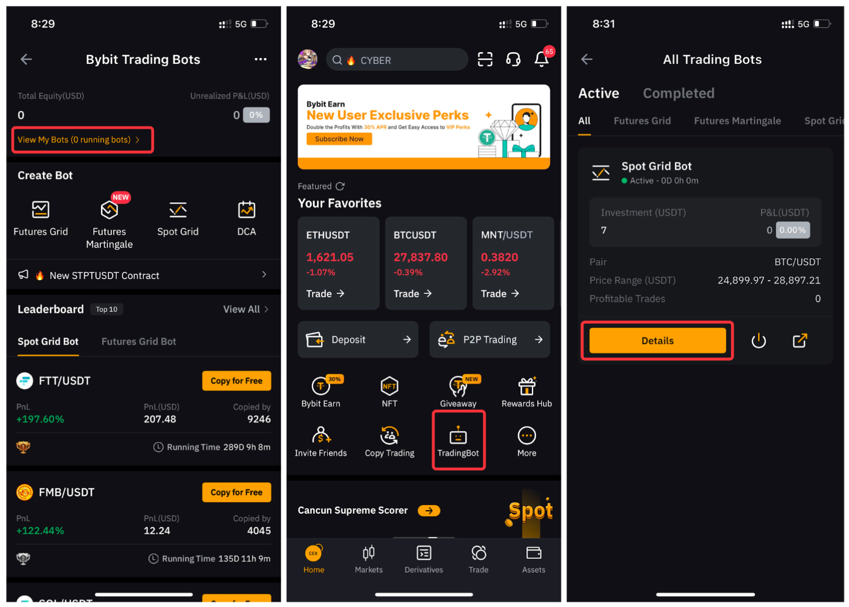 En la App de Bybit, ve a Trading Bots → Visualizar Mis Bots → Detalles para ver los detalles de tu bot.