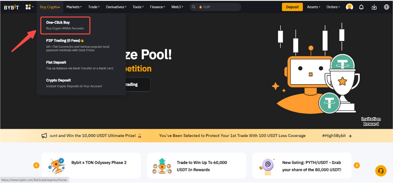 Paso 1: Haz clic en Comprar Cripto → Compra con un clic en la esquina superior izquierda de la barra de navegación para entrar en la página Comprar con un clic.