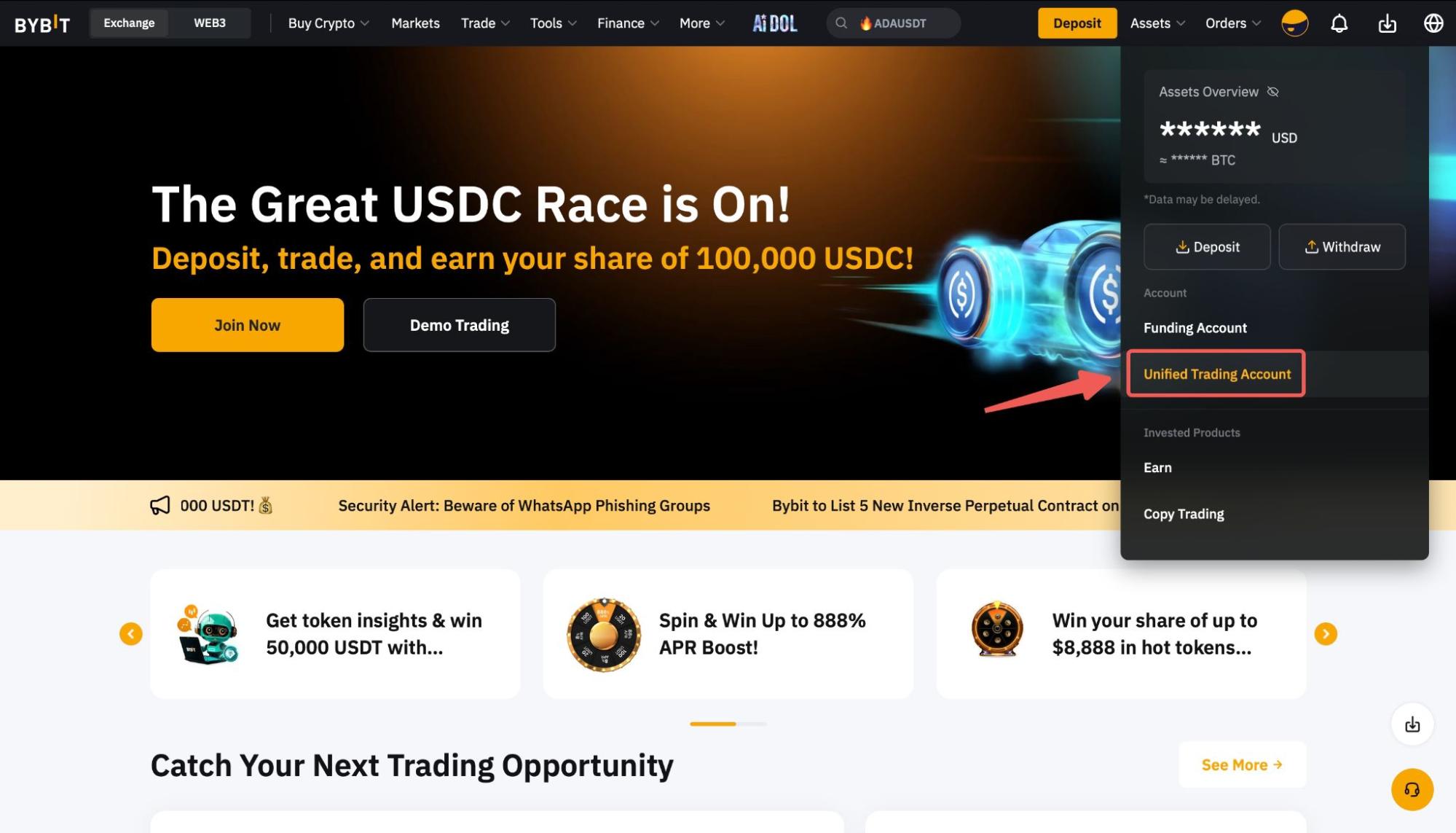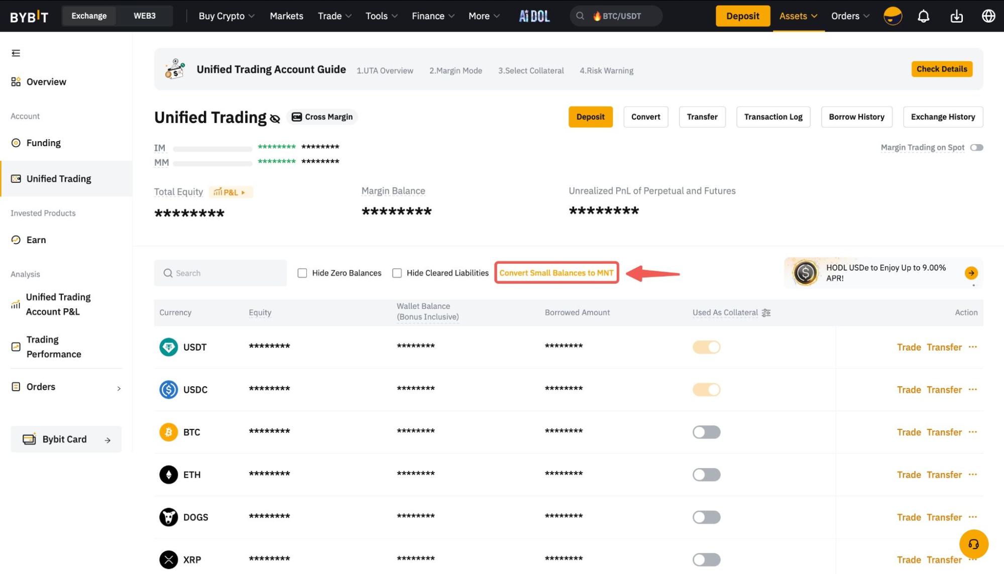 Paso 1: Haz clic en Activos → Cuenta de Trading Unificada para acceder a la página de Activos de Trading Unificada.