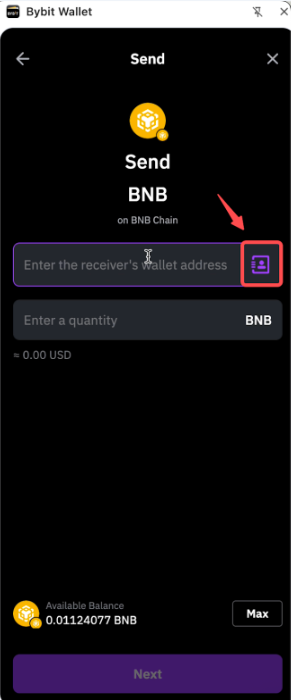Paso 2: Introduce la dirección de la billetera receptora o selecciónala en la libreta de direcciones.