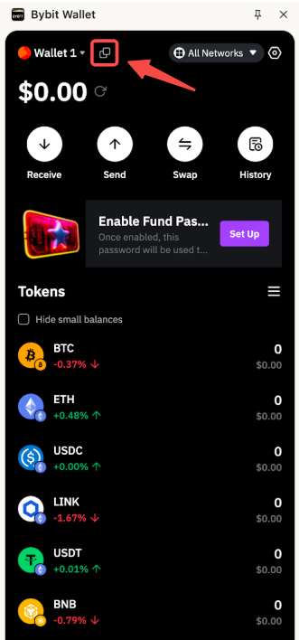 Paso 2: Haz clic en el icono de copiar para copiar la dirección de tu billetera.