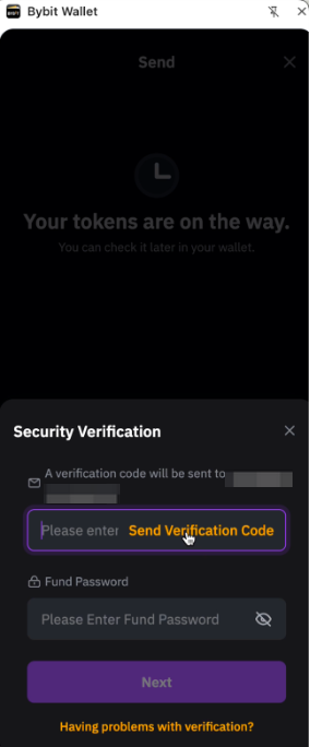 Paso 4: Haz clic en Enviar código de verificación y se enviará un código de verificación a tu dirección de correo electrónico. Introduce tu contraseña de fondos y el código de verificación que has recibido.