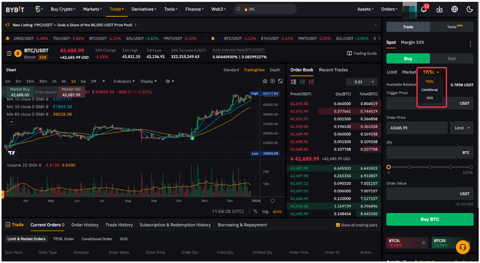 Bybit Spot Trading te permite ejecutar varios tipos de órdenes. Para obtener más información sobre las diferencias entre cada tipo de orden, consulta el artículo Tipos de órdenes disponibles en Bybit.