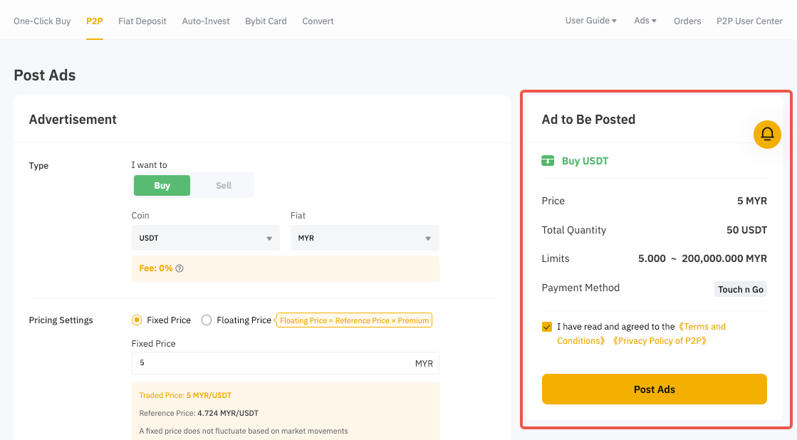 Esta es una guía detallada que ayudará a los anunciantes a publicar su primer anuncio P2P en Bybit.