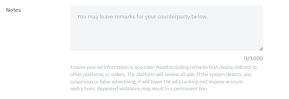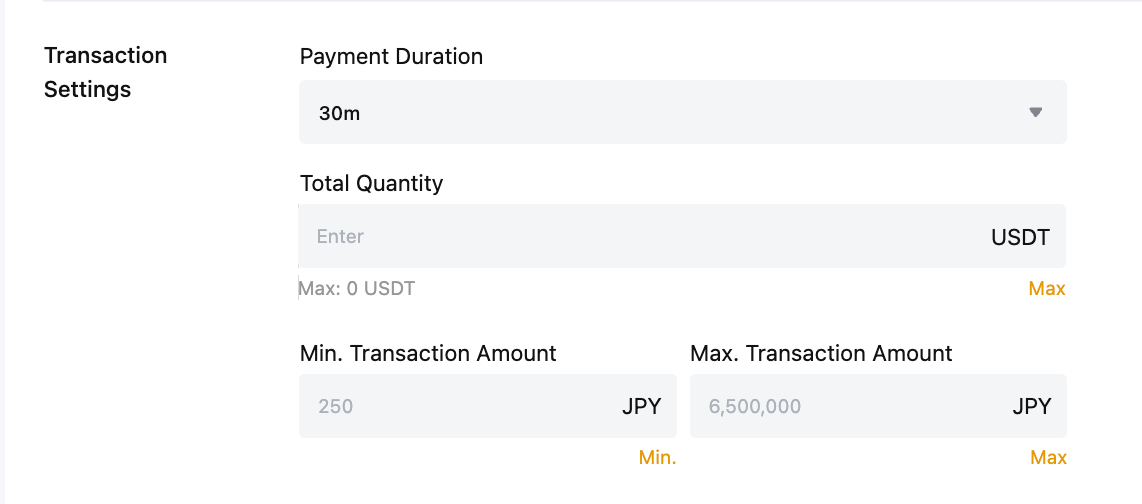 • Para obtener más información sobre las cantidades mínimas y máximas de USDT que se pueden negociar por anuncio, consulte Límites de órdenes P2P.