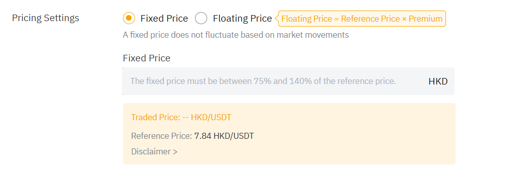 1. Selecciona Precio fijo o Precio flotante.