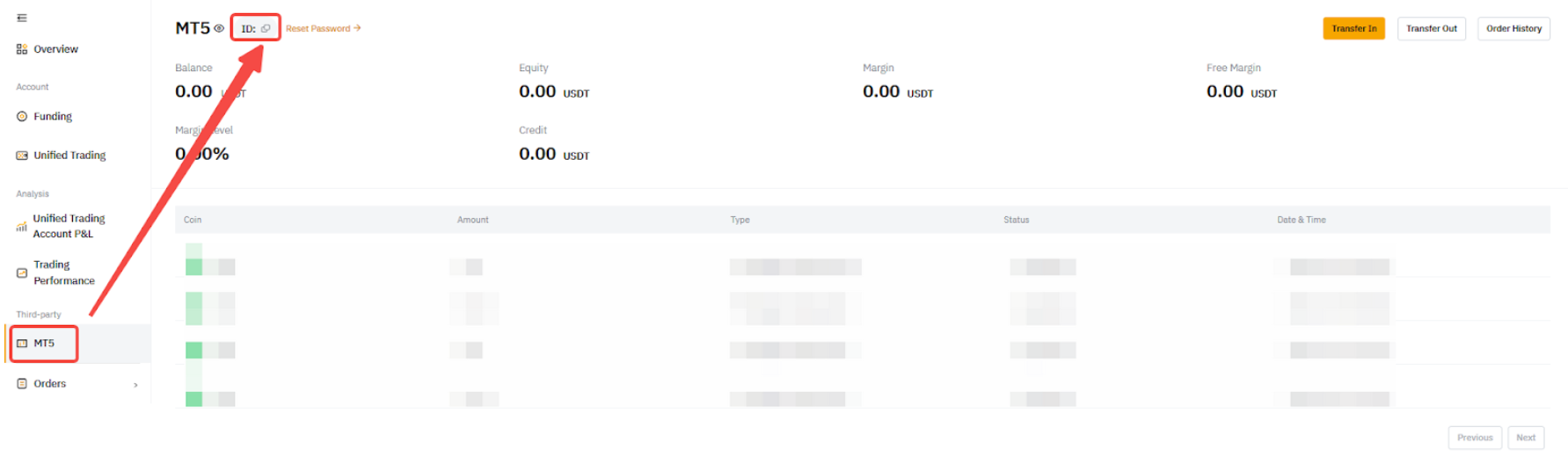 1. La sección ID de inicio de sesión MT5 estará en blanco en tu página Activo MT5.