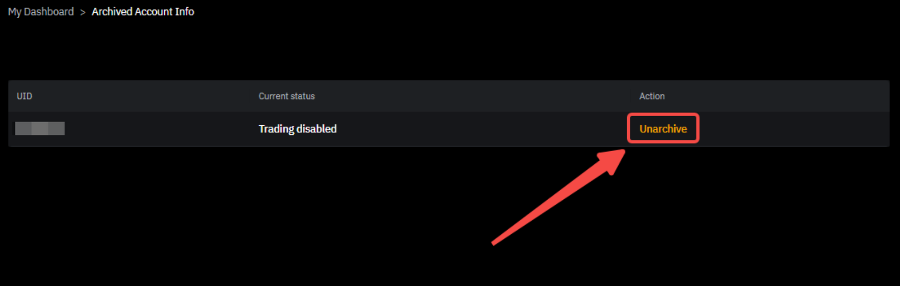 Una vez que hagas clic, se te redirigirá a otra página que muestra la información de tu cuenta archivada. Para realizar el paso final de desarchivar, haz clic en el botón Desarchivar.