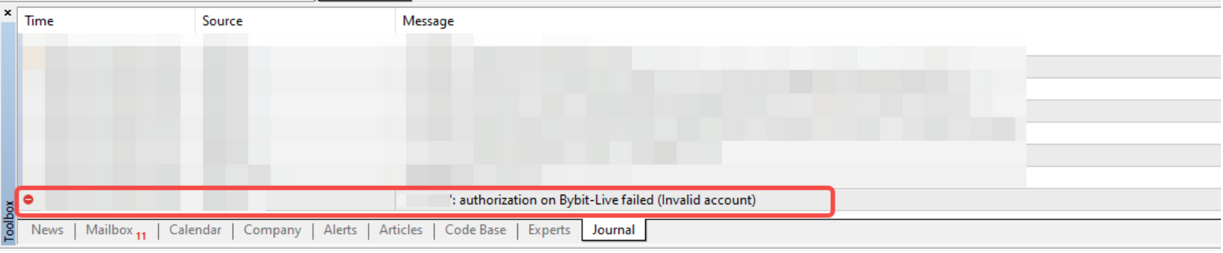 2. Verás un mensaje de error “Cuenta no válida” cuando intentes iniciar sesión en tu cuenta dentro del terminal de cliente MT5.