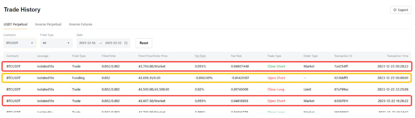 Descargo de responsabilidad: El ejemplo anterior se ofrece únicamente con fines ilustrativos y utiliza las tarifas de comisiones de negociación aplicables a una cuenta no VIP en el momento de redactar este documento. Por favor, consulte los siguientes artículos para consultar las tarifas de negociación actuales aplicadas en Bybit y para saber más sobre las tasas de financiación.